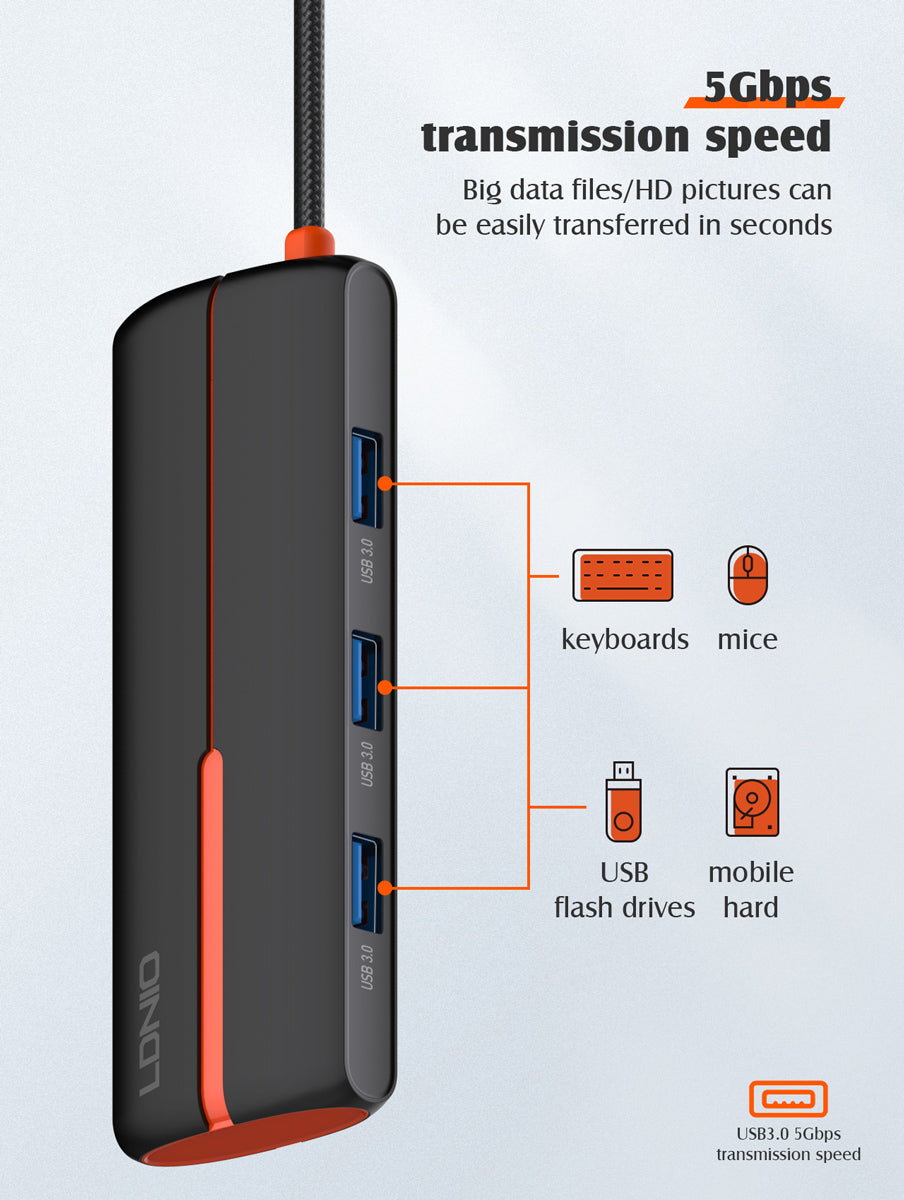 LDNIO docking station DS-25H, 5 θυρών, USB-C σύνδεση, 4K, 100W PD, μαύρο