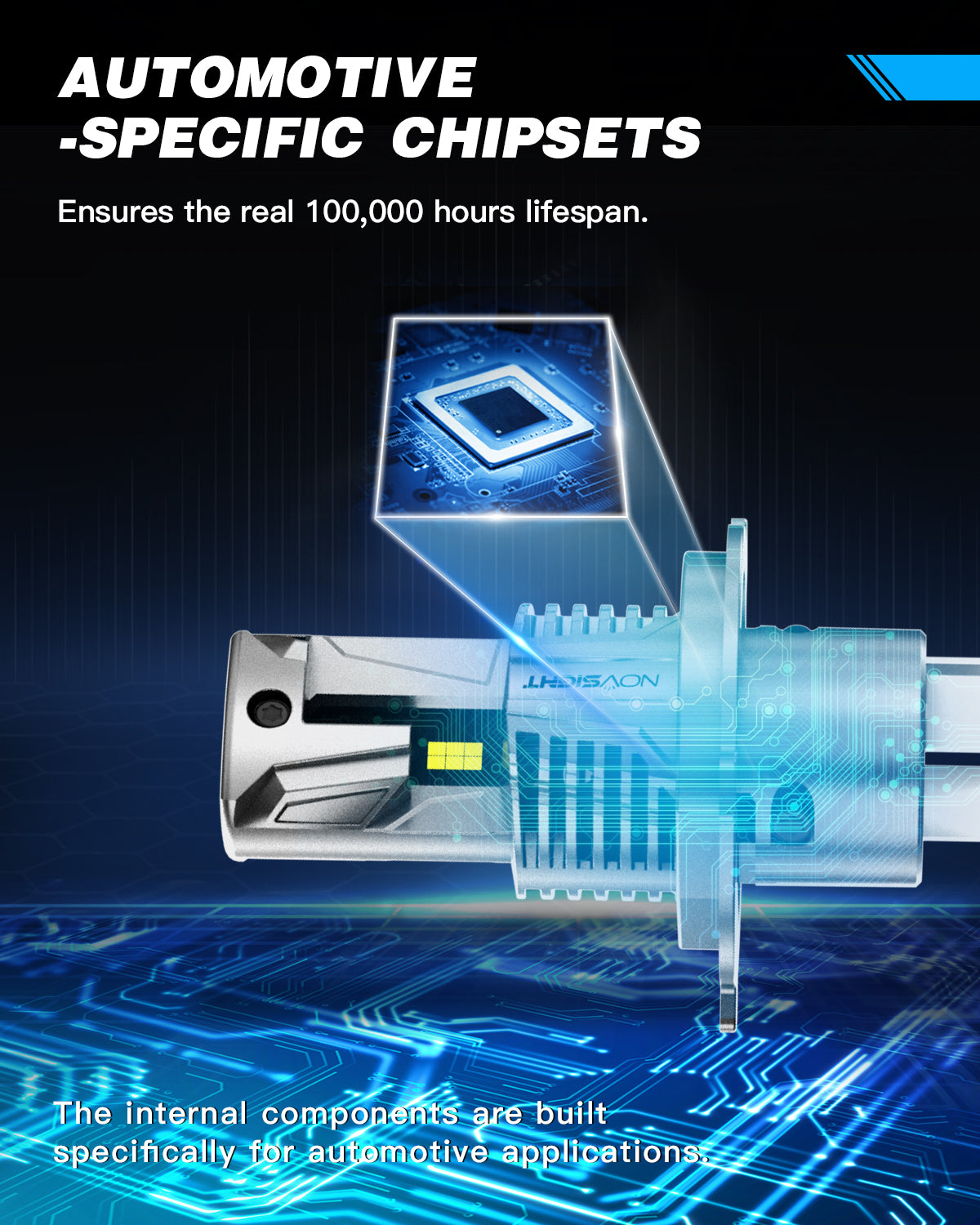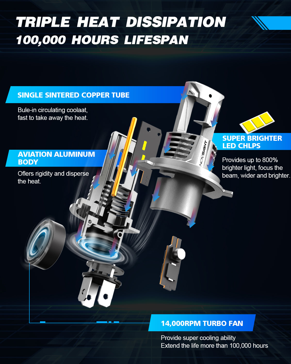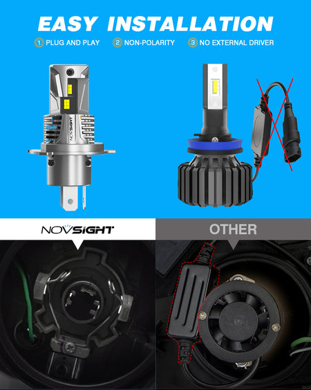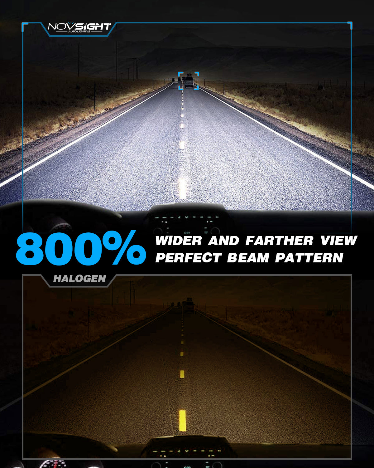 Αναβαθμίστε τα φώτα σας με τις NOVSIGHT LED H4/HB2/9003 – 22000  lumens (11000 lumens/λάμπα) σε θερμοκρασία 6500K, παρέχοντας έντονο, καθαρό λευκό φως που αντιστοιχεί στο πιο ακριβές φως xenon.
