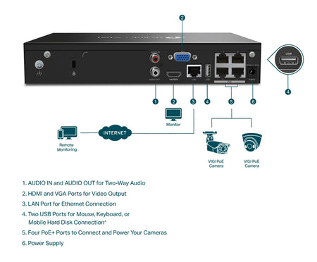 -80Mbps video access bandwidth: Το υψηλό εύρος ζώνης πρόσβασης βίντεο διασφαλίζει ότι το NVR σας συνδέει περισσότερες κάμερες με υψηλή ανάλυση. Με βάση τις εργαστηριακές δοκιμές με VIGI κάμερες, το VIGI NVR μπορεί να συνδέσει έως οκτώ κάμερες 4MP.