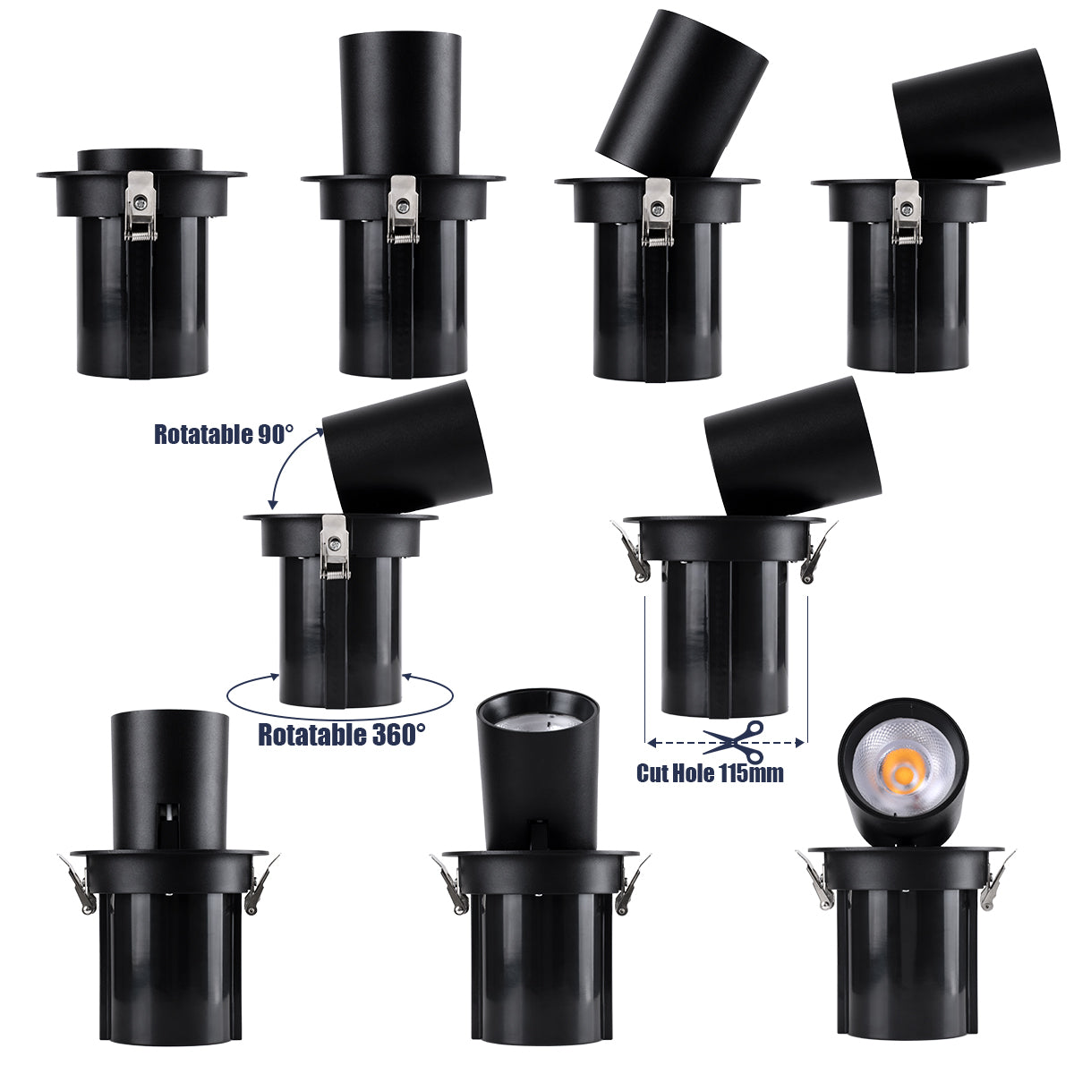 GLOBOSTAR® VIRGO-B 60312 Χωνευτό Κινούμενο Downlight Σποτ LED 20W 2600lm 36° AC 220-240V IP20 Φυσικό Λευκό 4500K - Bridgelux COB Chip & TÜV SÜD Driver - Μαύρο Ματ - Μ13.5 x Π13.5 x Υ14cm / Q11.5cm - 5 Χρόνια Εγγύηση