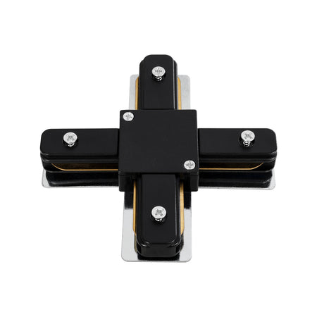 GloboStar® 2L-EUROTRACK 60909 Αντάπτορας +(Σταυρός) - Μονοφασικός 2 Καλωδίων για όλες τις Ράγες EUROTRACK AC 220-240V IP20 Μ10.7 x Π10.7 x Υ1.5cm - EUROTRACK® System 1L+1N - Θερμοπλαστικό - Μαύρο - 5 Χρόνια Εγγύηση