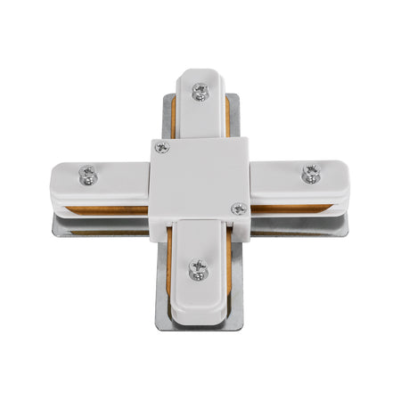 GloboStar® 2L-EUROTRACK 60910 Αντάπτορας +(Σταυρός) - Μονοφασικός 2 Καλωδίων για όλες τις Ράγες EUROTRACK AC 220-240V IP20 Μ10.7 x Π10.7 x Υ1.5cm - EUROTRACK® System 1L+1N - Θερμοπλαστικό - Λευκό - 5 Χρόνια Εγγύηση