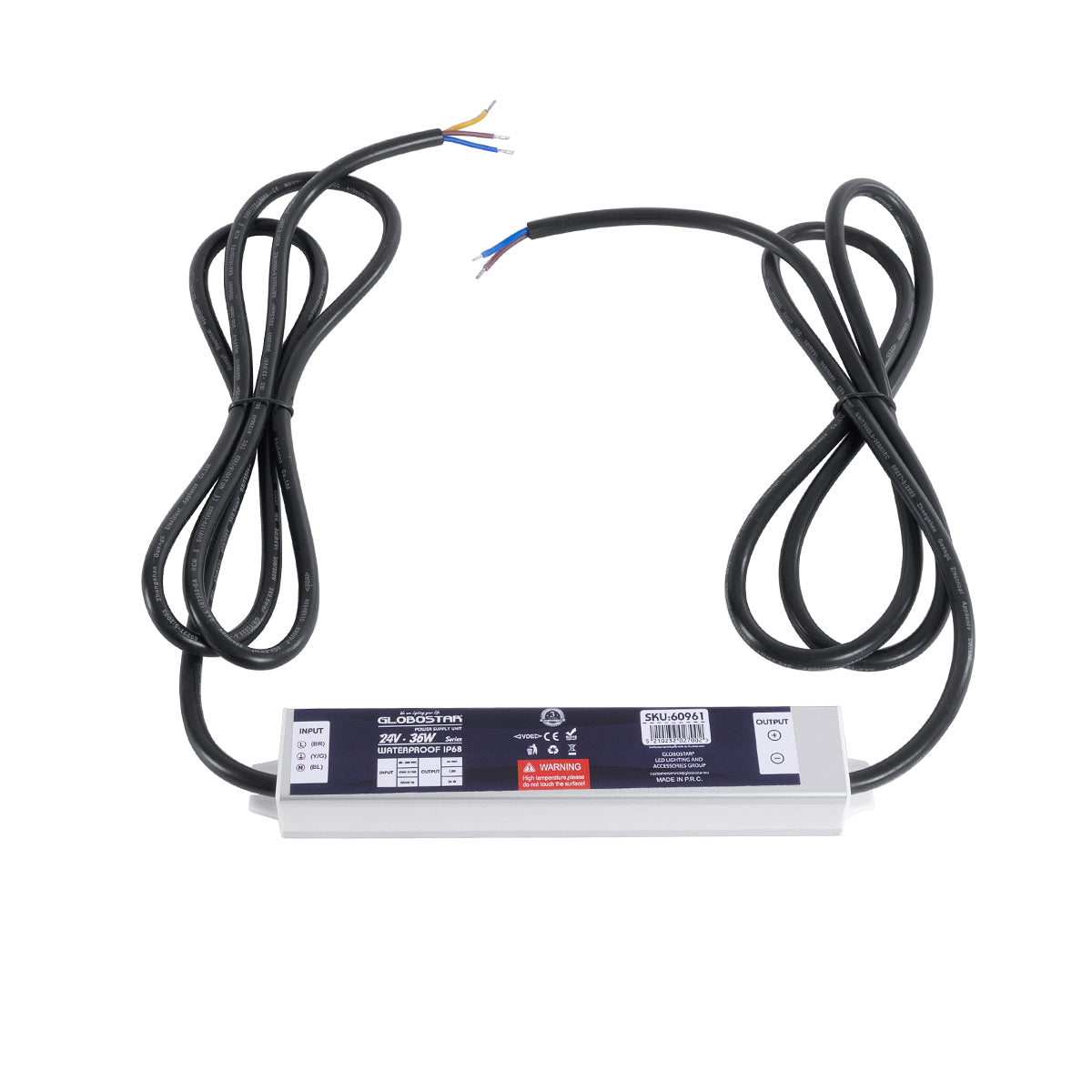 GLOBOSTAR® LUMISPLASH 60961 Τροφοδοτικό/Μετασχηματιστής Class II SELV 36W 1.5A DC 24V Αδιάβροχο IP68 - AC 220-240V σε DC 24V - Μ17 x Π3 x Υ2cm - 3 Χρόνια Εγγύηση