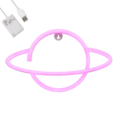 GloboStar® 78588 Φωτιστικό Ταμπέλα Φωτεινή Επιγραφή NEON LED Σήμανσης PLANET SATURN 5W με Καλώδιο Τροφοδοσίας USB - Μπαταρίας 3xAAA (Δεν Περιλαμβάνονται) - Ροζ