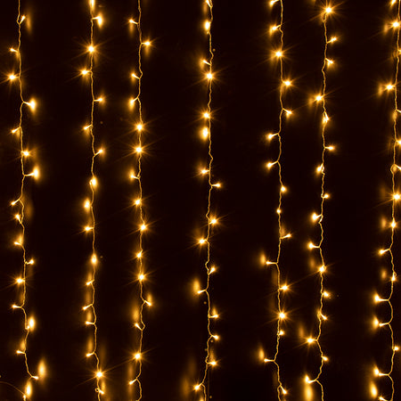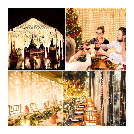85803 Διακοσμητική Κουρτίνα 3 x 3 Μέτρα με Controller 8 Προγραμμάτων Φωτισμού - Επεκτεινόμενη 300 LED 8W AC 230V με Διάφανο Καλώδιο & Πρίζα Schuko Αδιάβροχη IP67 Θερμό Λευκό 3000K Μ3 x Υ3m