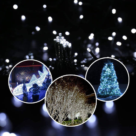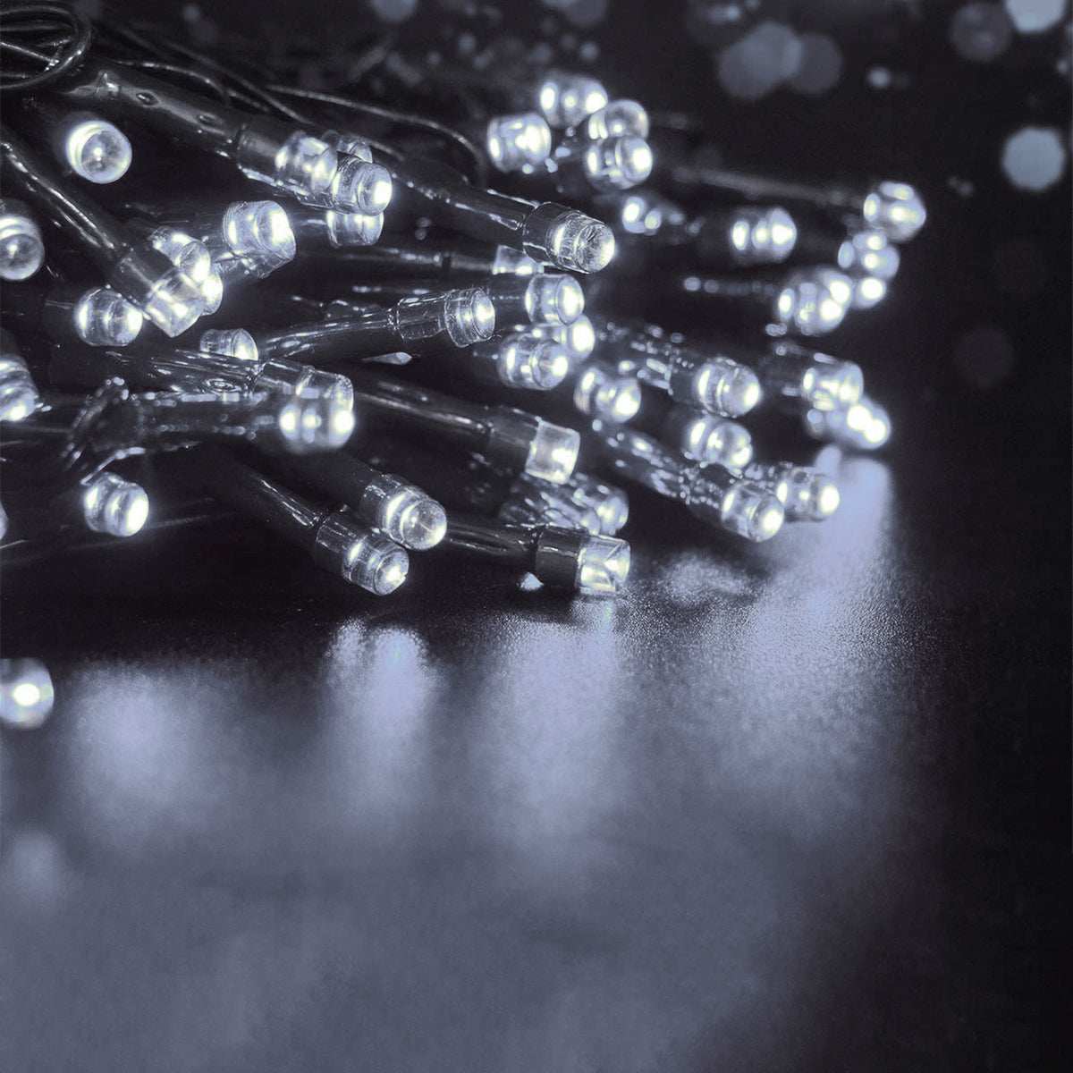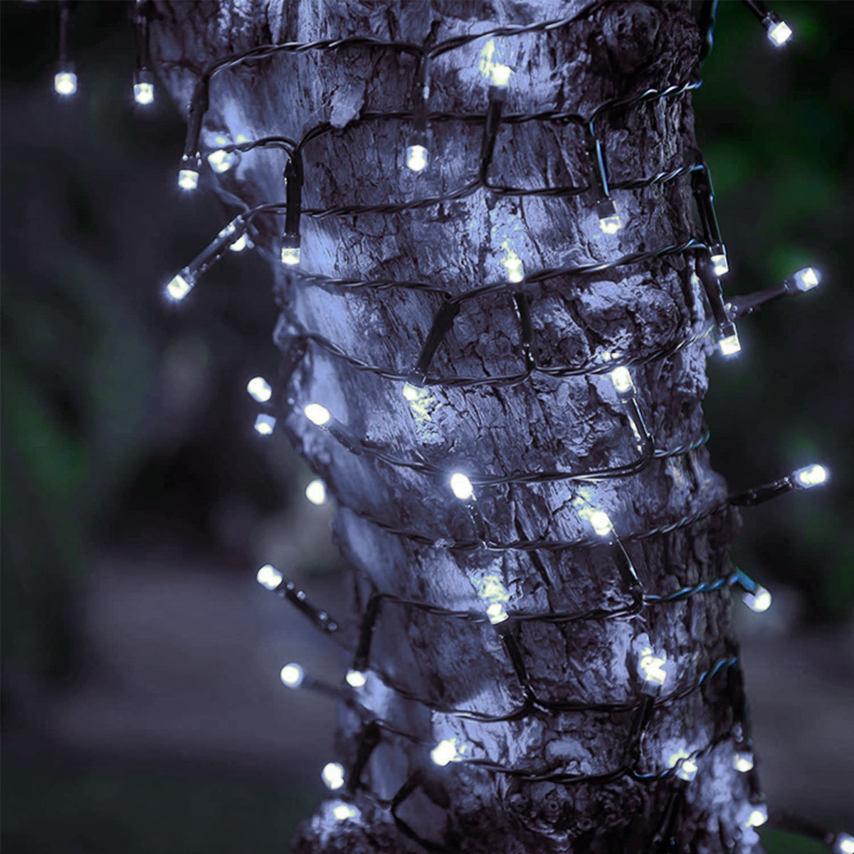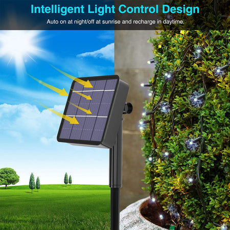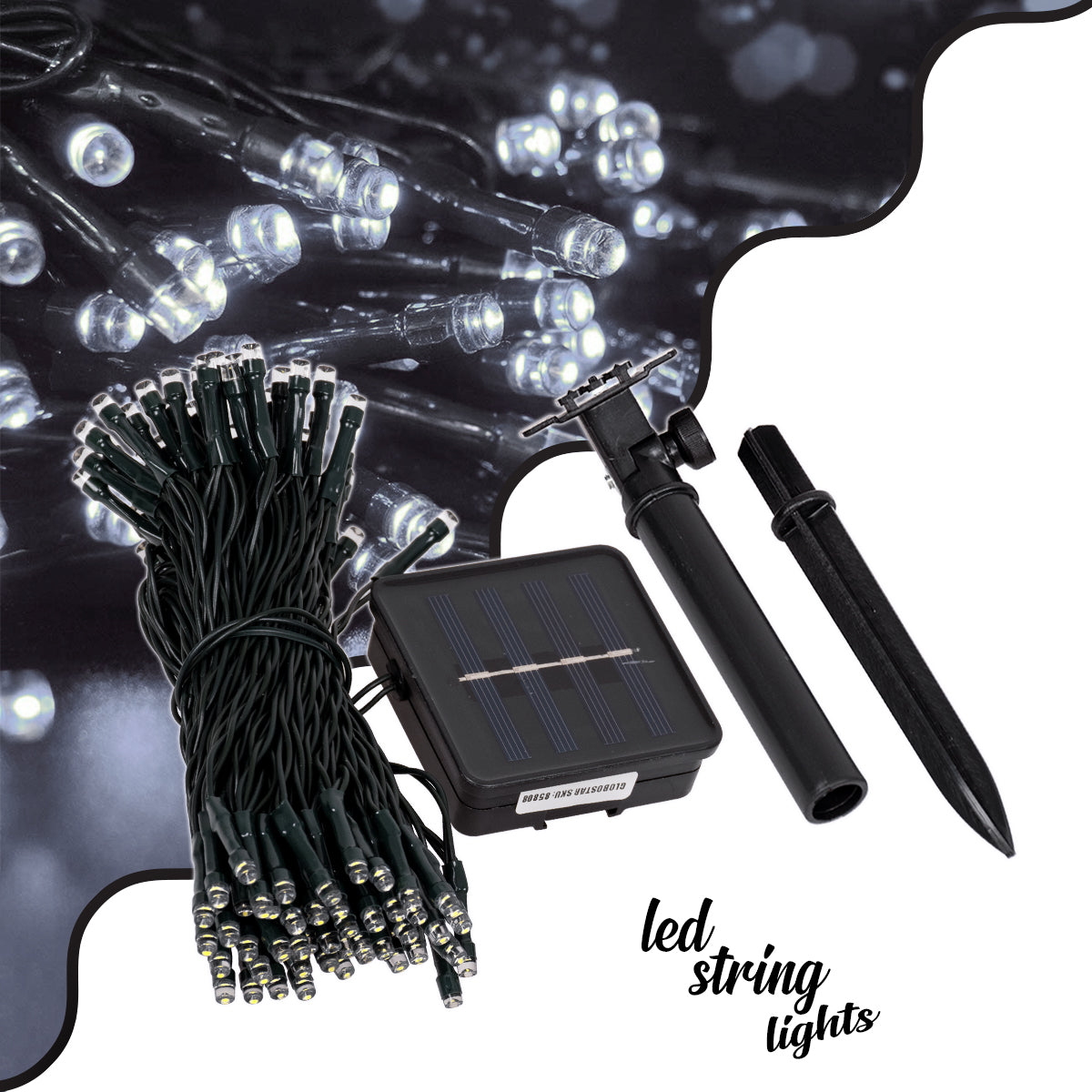 85808 Διακοσμητική Γιρλάντα 10 Μέτρων με Controller 8 Προγραμμάτων Φωτισμού - 100 LED 4W με Ενσωματωμένη Μπαταρία 600mAh - Φωτοβολταϊκό Πάνελ - Αισθητήρα Ημέρας-Νύχτας - Βάση Κήπου & Σκούρο Πράσινο Καλώδιο Αδιάβροχη IP65 Ψυχρό Λευκό 6000K Μ10m