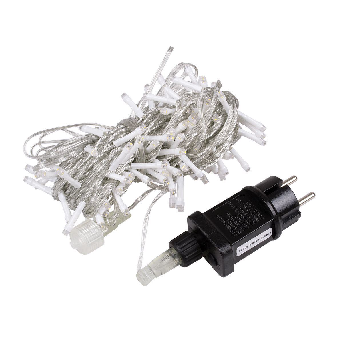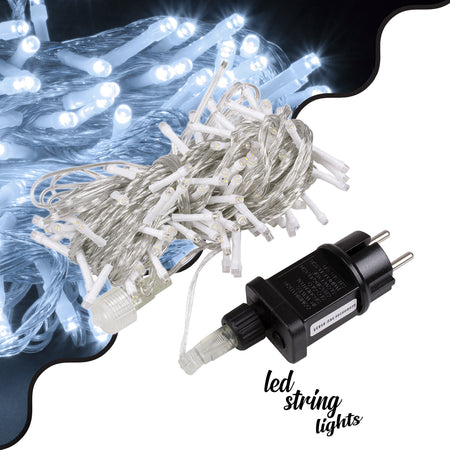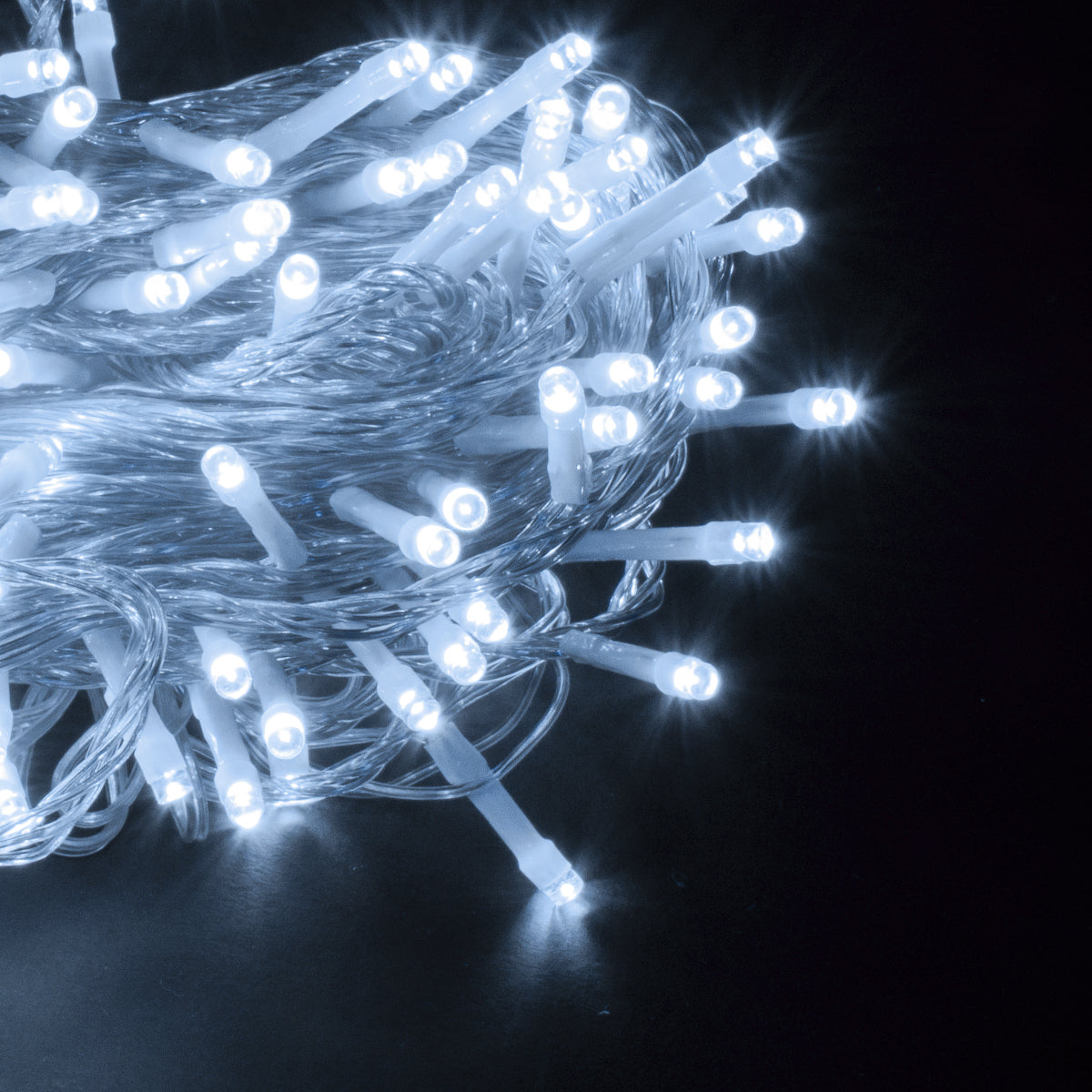 85834 Διακοσμητική Γιρλάντα 13 Μέτρα με Controller 8 Προγραμμάτων Εναλλαγών Φωτισμού - Επεκτεινόμενη 100 LED 3.6W AC 230V με Διάφανο Καλώδιο & Πρίζα Schuko Αδιάβροχη IP44 Ψυχρό Λευκό 6000K Μ13m