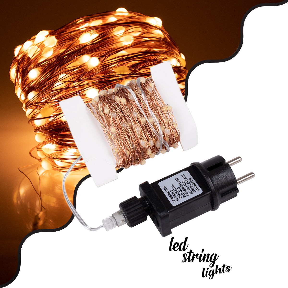 85842 Διακοσμητική Γιρλάντα 20 Μέτρα με Controller 8 Προγραμμάτων Εναλλαγών Φωτισμού - 200 LED 1.3W AC 230V με Χάλκινο Καλώδιο & Πρίζα Schuko Αδιάβροχη IP44 Θερμό Λευκό 3000K Μ20m