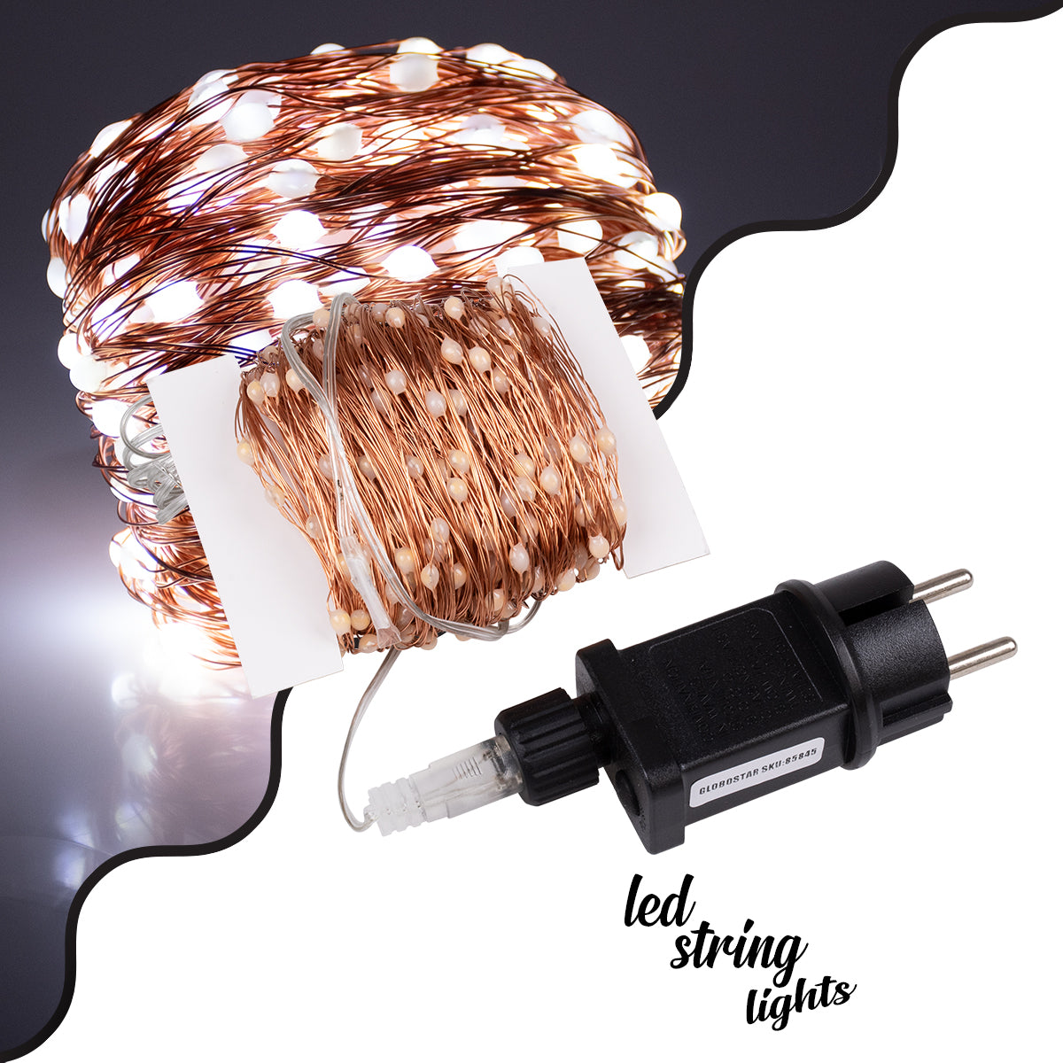85846 Διακοσμητική Γιρλάντα 32 Μέτρα με Controller 8 Προγραμμάτων Εναλλαγών Φωτισμού - 300 LED 3.6W AC 230V με Χάλκινο Καλώδιο & Πρίζα Schuko Αδιάβροχη IP44 Ψυχρό Λευκό 6000K Μ32m