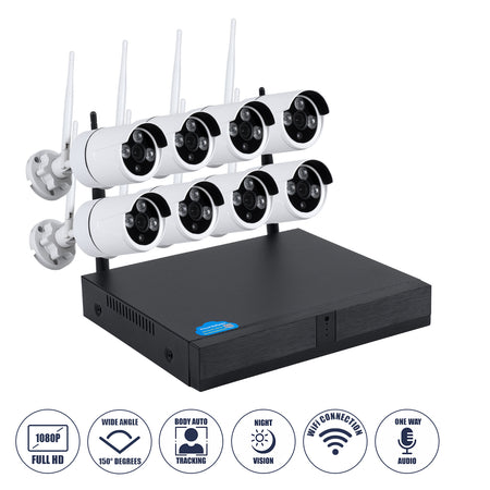 GloboStar® 86038 Ασύρματο Καταγραφικό με 8 x Camera 2MP 1080P WiFi 150° Μοιρών - Αδιάβροχο IP66 - Νυχτερινή Όραση με LED IR - Μονή Κατέυθυνση Ομιλίας - Ανιχνευτή Κίνησης - Νυχτερινή Λήψη - Λευκό