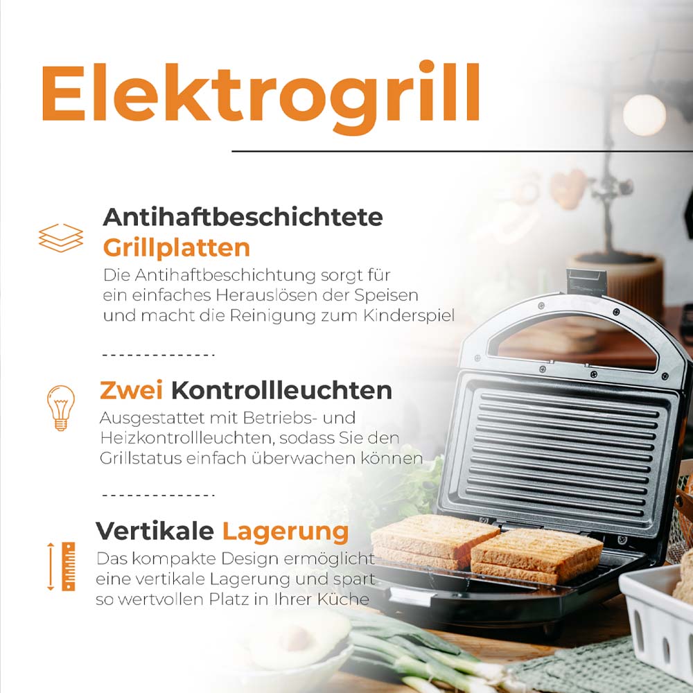 Πλάκες Γκριλιέρας με Μη-Κολλητική Επικάλυψη: Η μη-κολλητική επίστρωση εξασφαλίζει εύκολο ξεκόλλημα των τροφίμων και διευκολύνει τον καθαρισμό της συσκευής.