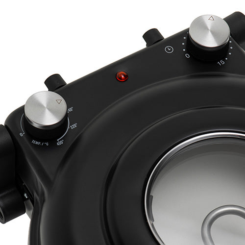- Εύχρηστο Πάνελ Ελέγχου: Δύο περιστροφικοί διακόπτες για εύκολη ρύθμιση θερμοκρασίας και χρόνου ψησίματος.