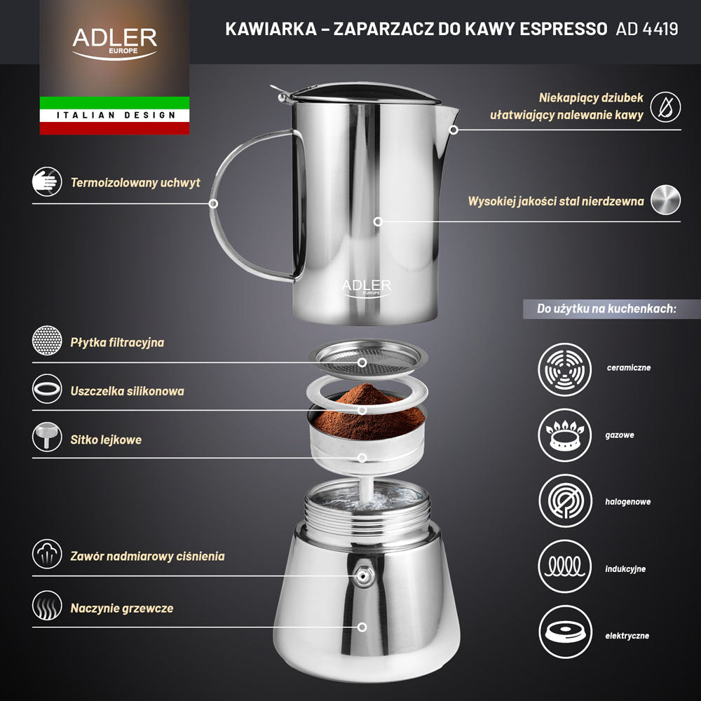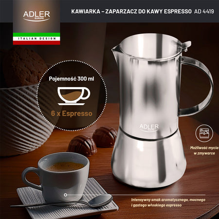 Adler Espresso Coffee Maker 350 Ml Silver Steel