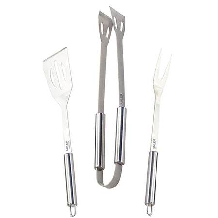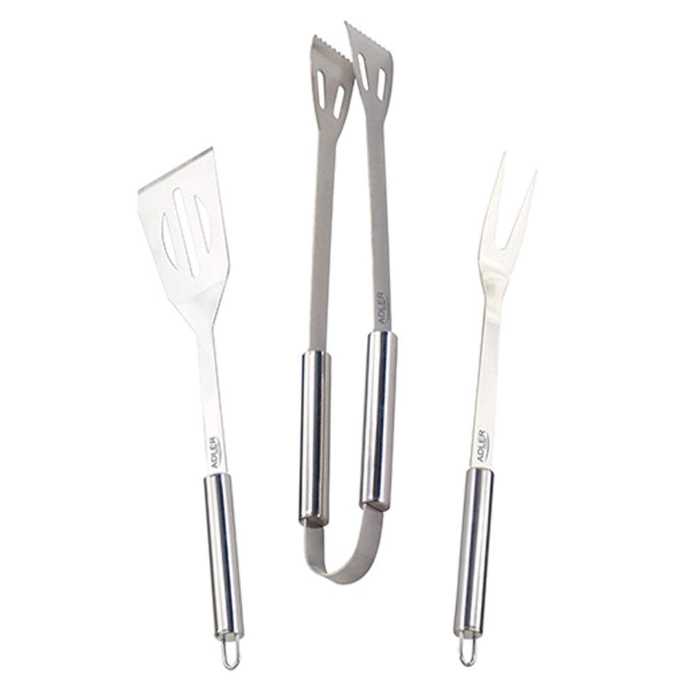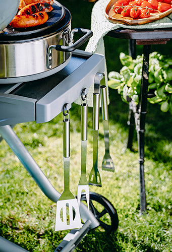 Σετ Εργαλείων: Περιλαμβάνει μία σπάτουλα (35,4 x 7,7 εκ.) με αιχμηρή άκρη για εύκολο γύρισμα και σερβίρισμα, ένα πιάτο (35,3 x 3,4 εκ.) ιδανικό για να κρατάτε τα κρέατα κατά το κόψιμο ή γύρισμα, και τσιμπίδα με 8 δόντια (34,5 x 4,2 εκ.), ιδανική για ασφαλή χειρισμό των ψημένων φαγητών.