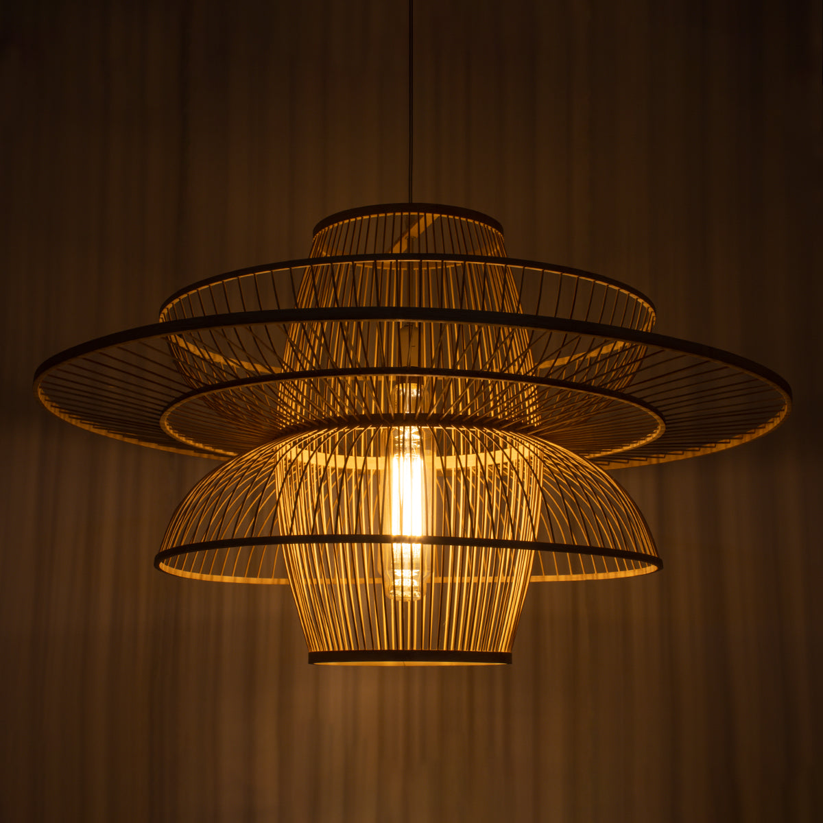 GLOBOSTAR® BALI 01758 Boho Κρεμαστό Φωτιστικό Οροφής με Ντουί 1 x E27 AC 220-240V IP20 - Μπεζ - Μ100 x Π100 x Υ60cm
