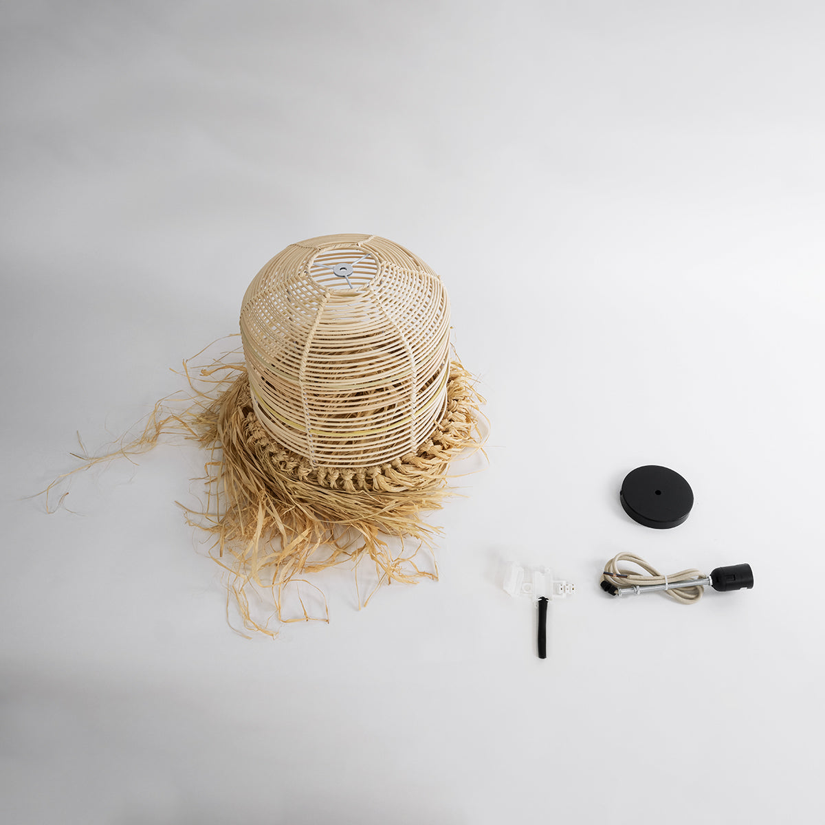 GLOBOSTAR® BASSETERRE 02162 Boho Κρεμαστό Φωτιστικό Οροφής με Ντουί 1 x E27 AC 220-240V IP20 - Μπεζ - Μ35 x Π35 x Υ60cm