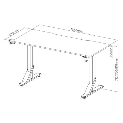 Διαστάσεις γραφείου: 1360 x 600 x 710/760/810mm
