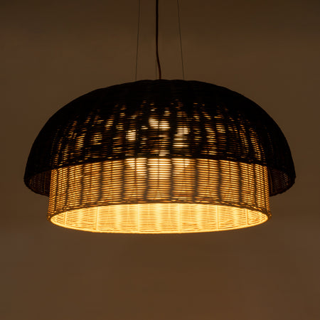 GLOBOSTAR® CORSICA 02216 Boho Κρεμαστό Φωτιστικό Οροφής με Ντουί 1 x E27 AC 220-240V IP20 - Μαύρο & Μπεζ - Μ70 x Π70 x Υ35cm