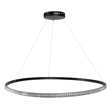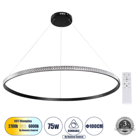 GLOBOSTAR® DIAMOND 61134 Μοντέρνο Κρεμαστό Φωτιστικό Οροφής LED 75W 8743lm 360° AC 220-240V IP20 Ρυθμιζόμενο Λευκό CCT με Χειριστήριο από 2700K έως 6000K Dimmable - Lumileds SMD Chip - Μαύρο Ματ - Μ100 x Π100 x Υ3cm - 3 Χρόνια Εγγύηση