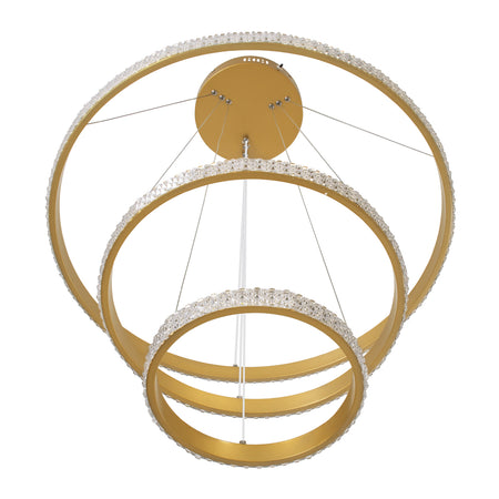 GLOBOSTAR® DIAMOND TRIO 61137-DECO Μοντέρνο Κρεμαστό Φωτιστικό Οροφής LED 100W 12123lm 360° AC 220-240V IP20 Ρυθμιζόμενο Λευκό CCT με Χειριστήριο από 2700K έως 6000K Dimmable - Lumileds SMD Chip - Χρυσό Βούρτσας - Μ60 x Π60 x Υ60cm - 3 Χρόνια Εγγύηση