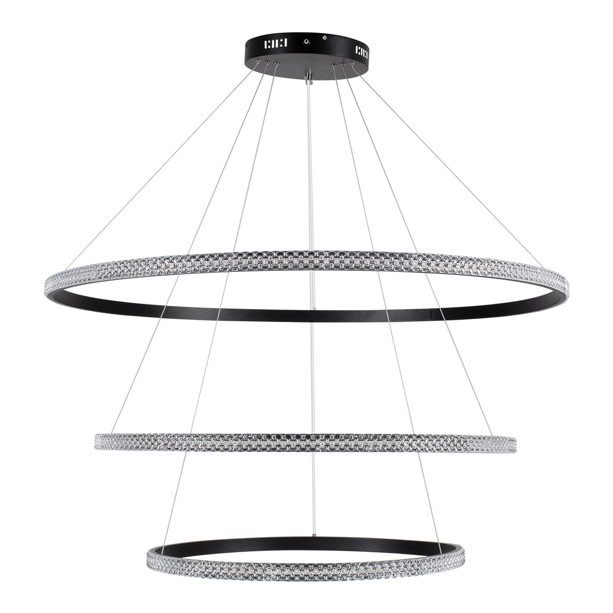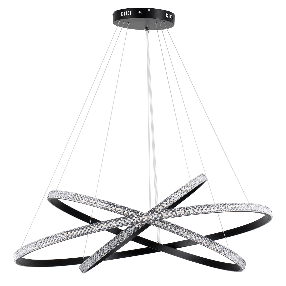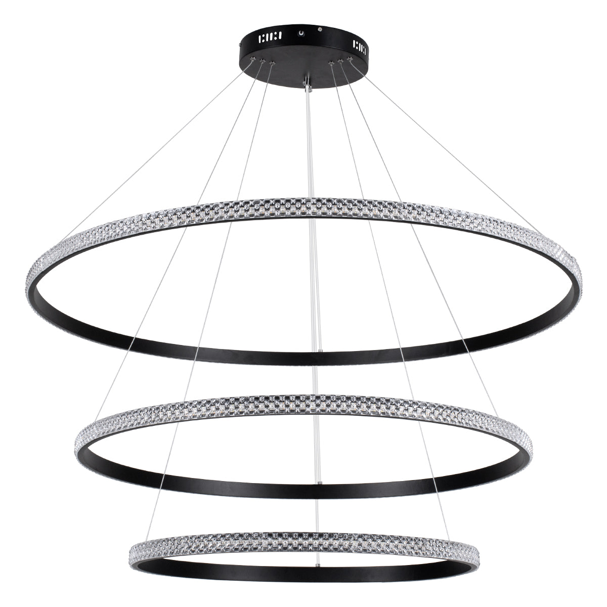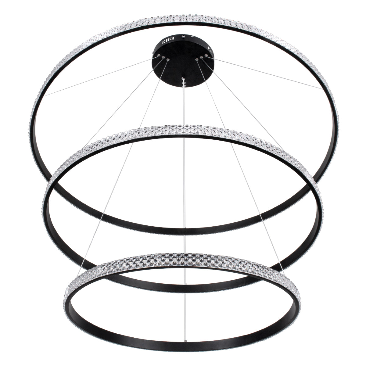 GLOBOSTAR® DIAMOND TRIO 61140 Μοντέρνο Κρεμαστό Φωτιστικό Οροφής LED 150W 18379lm 360° AC 220-240V IP20 Ρυθμιζόμενο Λευκό CCT με Χειριστήριο από 2700K έως 6000K Dimmable - Lumileds SMD Chip - Μαύρο Ματ - Μ100 x Π100 x Υ100cm - 3 Χρόνια Εγγύηση