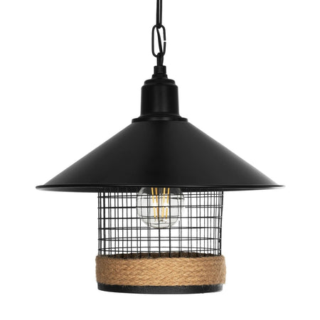 GLOBOSTAR® GLORA 201-0090 Vintage Κρεμαστό Φωτιστικό Οροφής με Ντουί 1 x E27 AC 220-240V IP20 - Μαύρο & Μπεζ - Μ30 x Π30 x Υ29cm