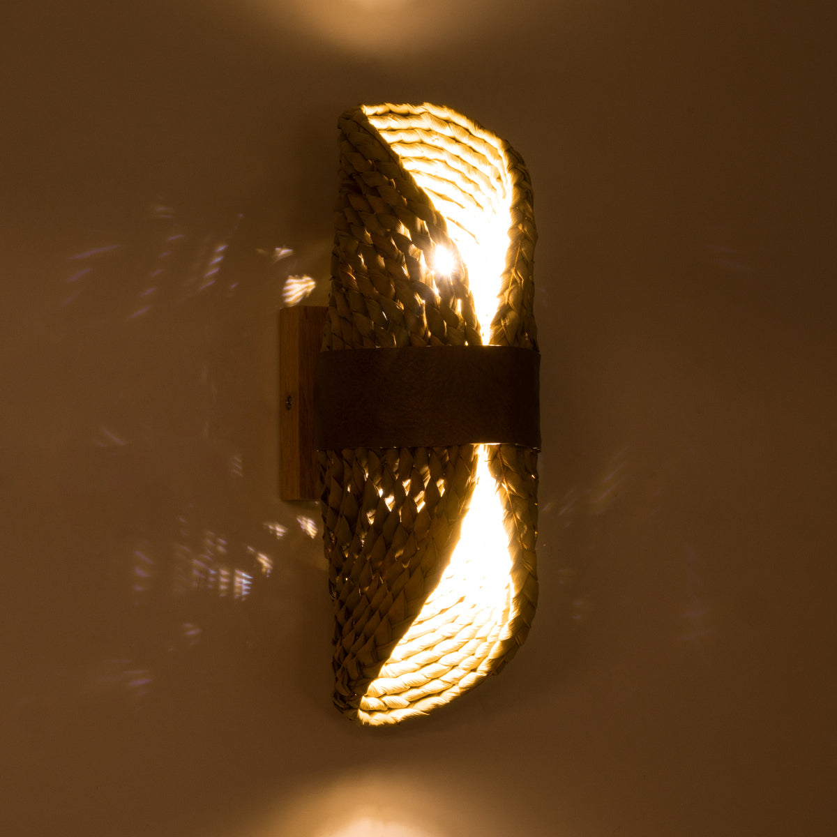 GLOBOSTAR® GUAVA 02222 Boho Φωτιστικό Τοίχου - Απλίκα με Ντουί 2 x G9 AC 220-240V IP20 - Μπεζ & Καφέ - Μ11 x Π13 x Υ30cm
