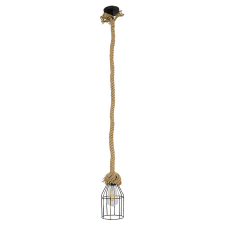 GloboStar® LAICO 01129 Vintage Κρεμαστό Φωτιστικό Οροφής Μονόφωτο Μπρούτζινο Σκουριά Μεταλλικό Πλέγμα με Μπεζ Σχοινί Φ12 x Y100cm