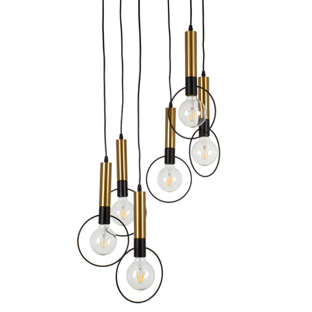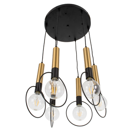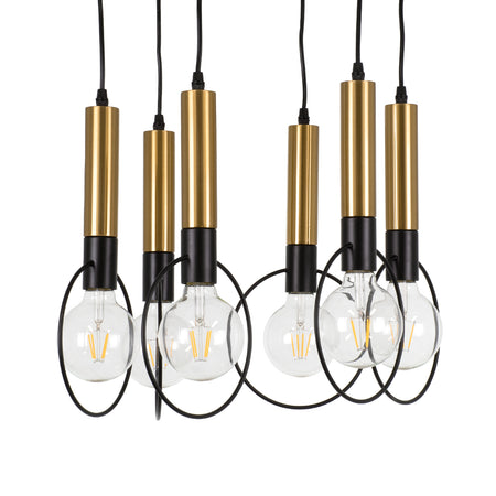GLOBOSTAR® OLVERO 00774 Μοντέρνο Κρεμαστό Φωτιστικό Οροφής με Ντουί 6 x E27 AC 220-240V IP20 - Μαύρο & Χρυσό - Μ55 x Π55 x Y130cm