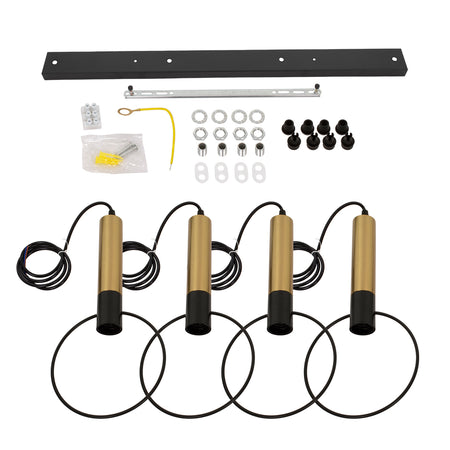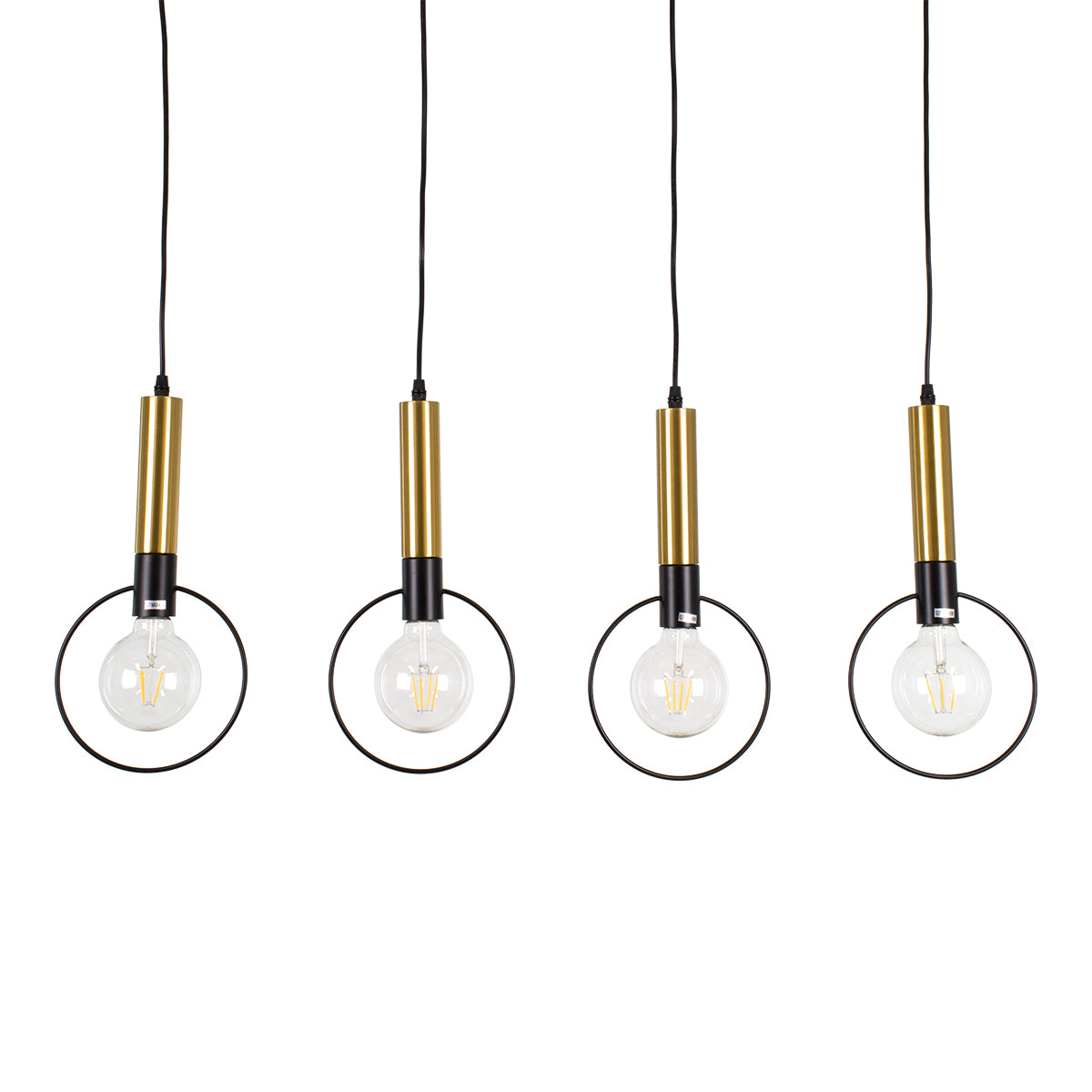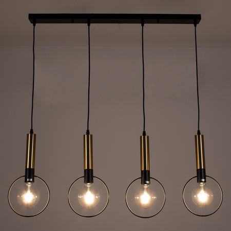 GLOBOSTAR® OLVERO 00775 Μοντέρνο Κρεμαστό Φωτιστικό Οροφής με Ντουί 4 x E27 AC 220-240V IP20 - Μαύρο & Χρυσό - Μ90 x Π18 x Y130cm