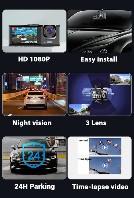 POWERTECH κάμερες αυτοκινήτου PT-1331, μπροστινή/καμπίνας/οπισθοπορείας, 2" οθόνη, 1080p/480p