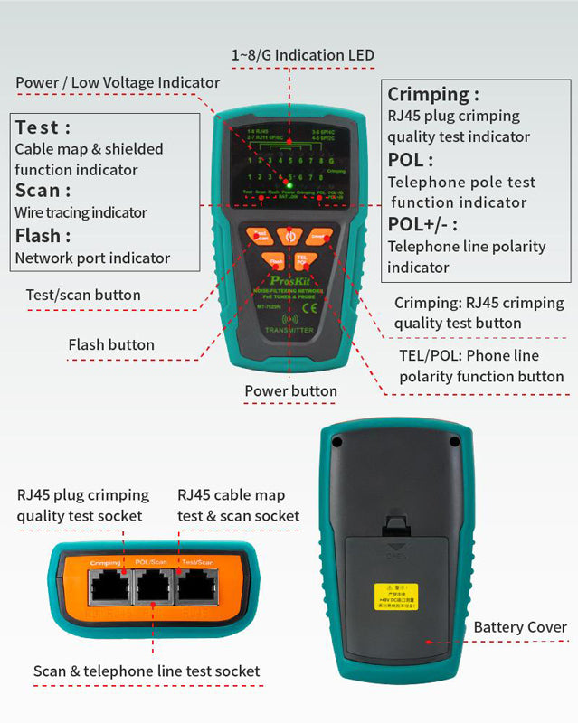PROSKIT tester καλωδίων δικτύου MT-7029N για RJ45/11/12