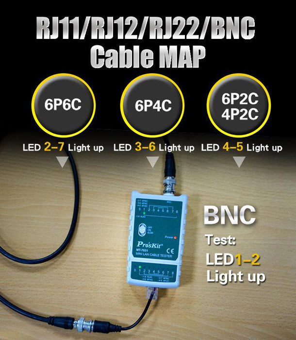 PROSKIT tester καλωδίων δικτύου MT-7031 για RJ45/11/12/22 & BNC