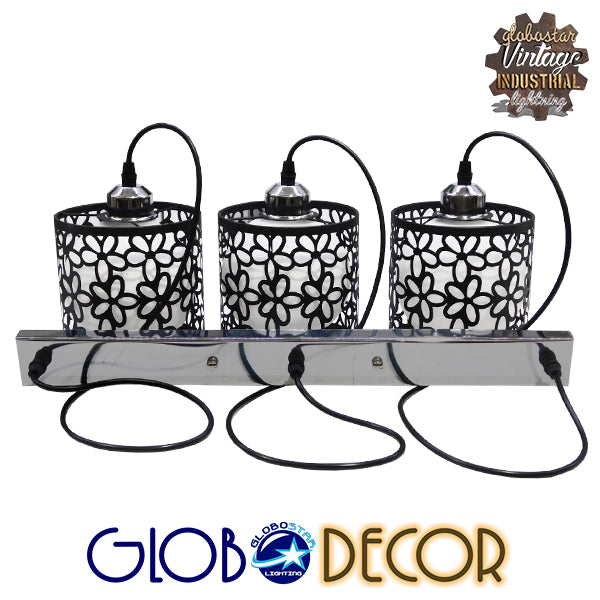 GLOBOSTAR® RAINELDA 01247 Μοντέρνο Κρεμαστό Φωτιστικό Οροφής με Ντουί 3 x E27 AC 220-240V IP20 - Μαύρο & Λευκό - Μ60 x Π15 x Υ19cm