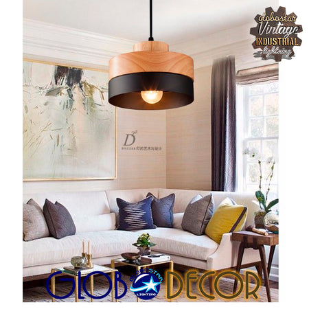 GLOBOSTAR® RUHIEL 01233 Μοντέρνο Κρεμαστό Φωτιστικό Οροφής με Ντουί 1 x E27 AC 220-240V IP20 - Μαύρο & Μπεζ - Μ18 x Π18 x Υ12cm