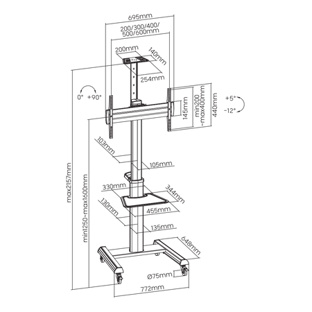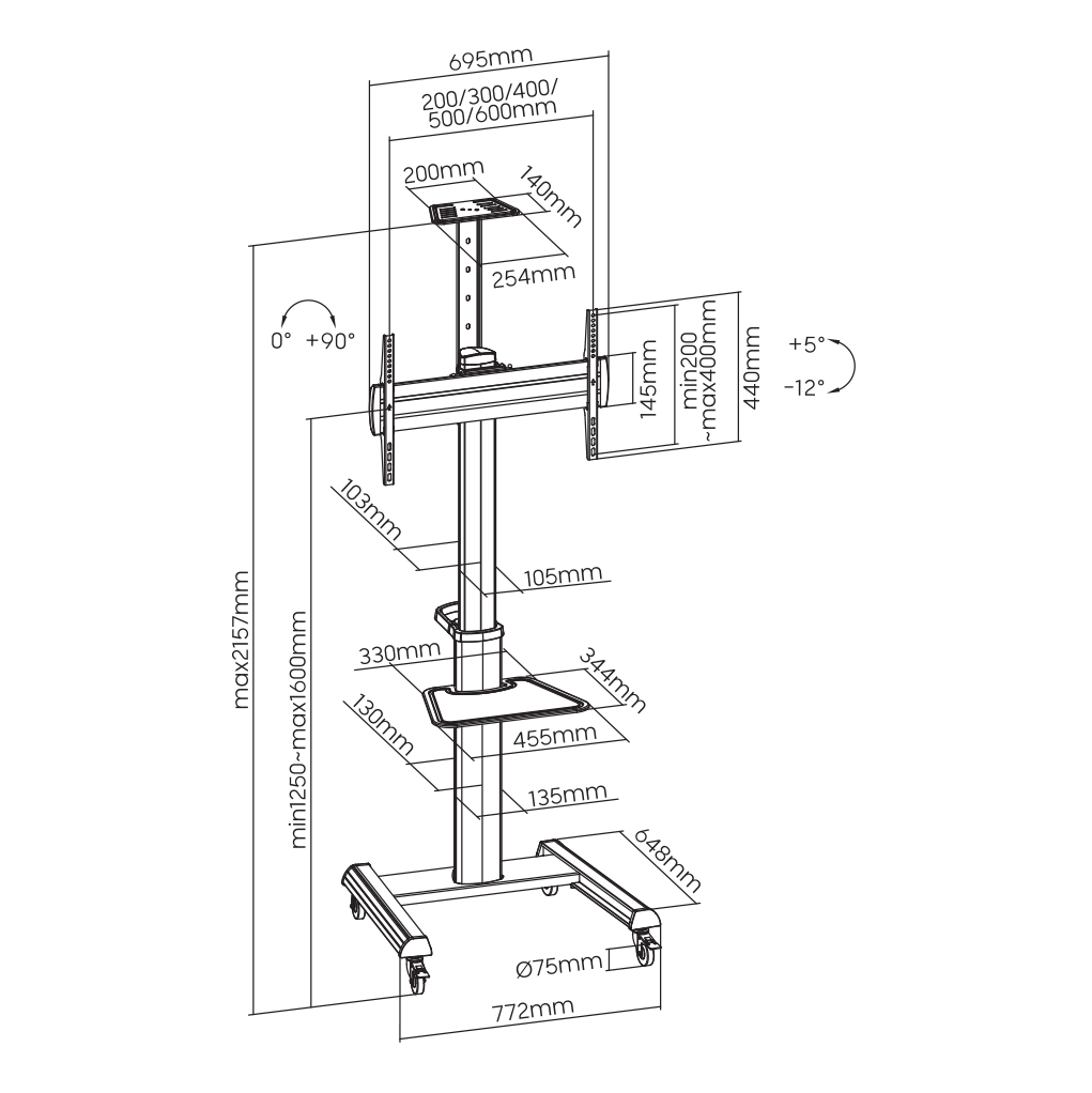 - Ρύθμιση ύψους: (συνολικό ύψος με το ράφι του βιντεοπροβολέα 2157mm)