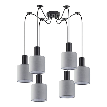 SE21-BL-4-BL6-SH2 ADEPT TUBE Black Pendant Grey Fabric Shade+