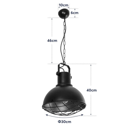 GLOBOSTAR® SIERRA 203-0011 Vintage Κρεμαστό Φωτιστικό Οροφής με Ντουί 1 x E27 AC 220-240V IP20 - Μαύρο & Χρυσό - Μ30 x Π30 x Υ40cm