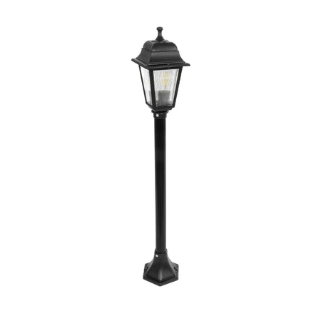 GloboStar® SOLME 203-0212 Vintage Επιδαπέδιο Φωτιστικό Κολωνάκι Κήπου Μονόφωτο 1 x E27 IP44 Μαύρο & Διάφανο Πλαστικό - Μ22 x Π22 x Υ100cm