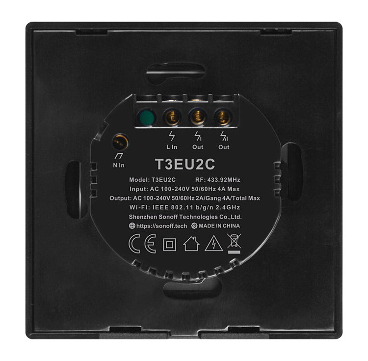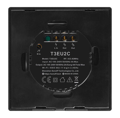 SONOFF smart διακόπτης ΤΧ-T3EU2C, αφής, Wi-Fi, διπλός, μαύρος