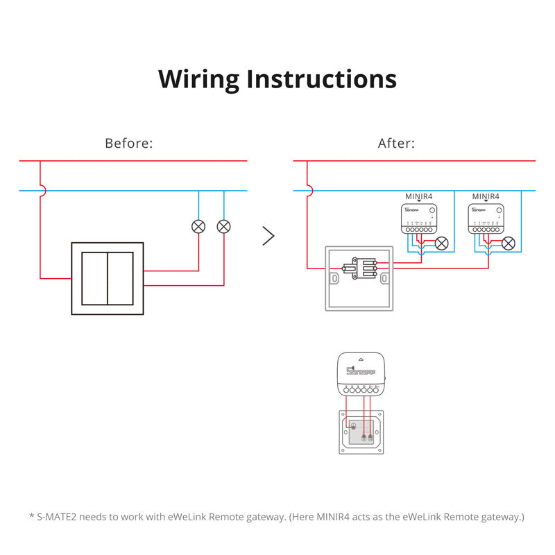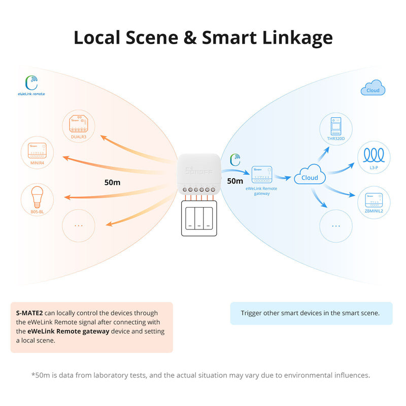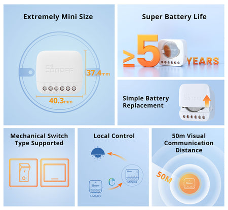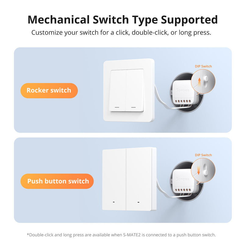 Ο διακόπτης S-MATE2 είναι μια συσκευή, που σε συνδυασμό με smart διακόπτες της Sonoff όπως ο MINIR4 και DUALR3 (πωλούνται ξεχωριστά), σας βοηθά να μετατρέψετε το σπίτι σας σε "έξυπνο σπίτι".