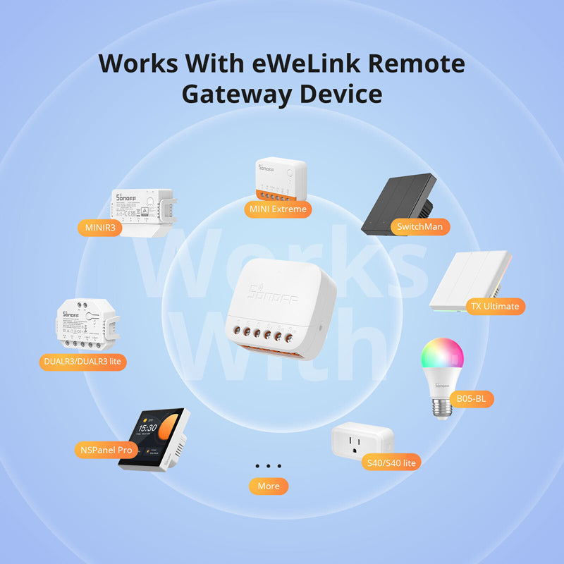 Επικοινωνεί ασύρματα με τους διακόπτες της Sonoff μέσω του eWeLink-Remote signal (εμβέλεια έως 50m) επιτρέποντας σας να ελέγχετε τις συσκευές σας ακόμη και όταν δεν υπάρχει διαθέσιμη σύνδεση στο internet αλλά και να ενεργοποιήσετε περισσότερες smart συσκευές στις smart σκηνές σας.