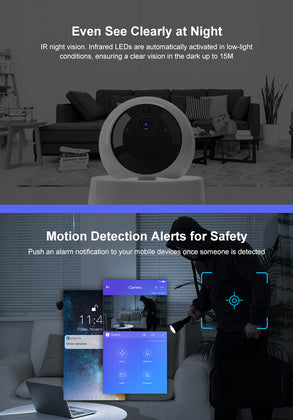 Λειτουργίες: remote control, two-way audio, motion detection, share control, activity alert, push notification, RTSP protocol, TF card storage
