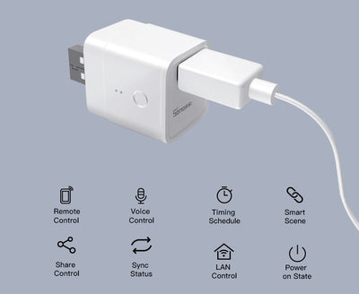 Με τον αντάπτορα Micro της Sonoff θα μετατρέψετε κάθε USB συσκευή σε smart, αποκτώντας όλα τα πλεονεκτήματα που προσφέρουν οι smart αυματισμοί! Είναι συμβατό με τις εφαρμογές eWelink, Amazon Alexa και Google Home.