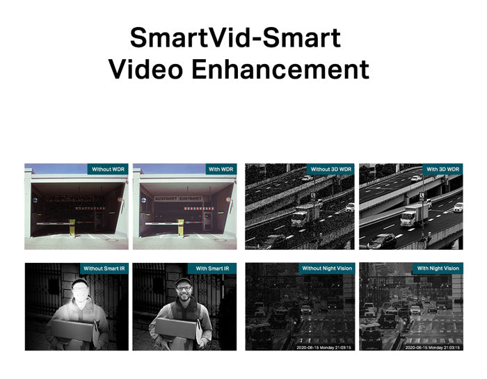 -Έξυπνη βελτίωση βίντεο: Οι τεχνολογίες επαγγελματικών προδιαγραφών όπως Smart IR, WDR, 3D DNR και Night Vision της VIGI, επεξεργάζονται το βίντεο για να βελτιώσουν σημαντικά την ποιότητά του.