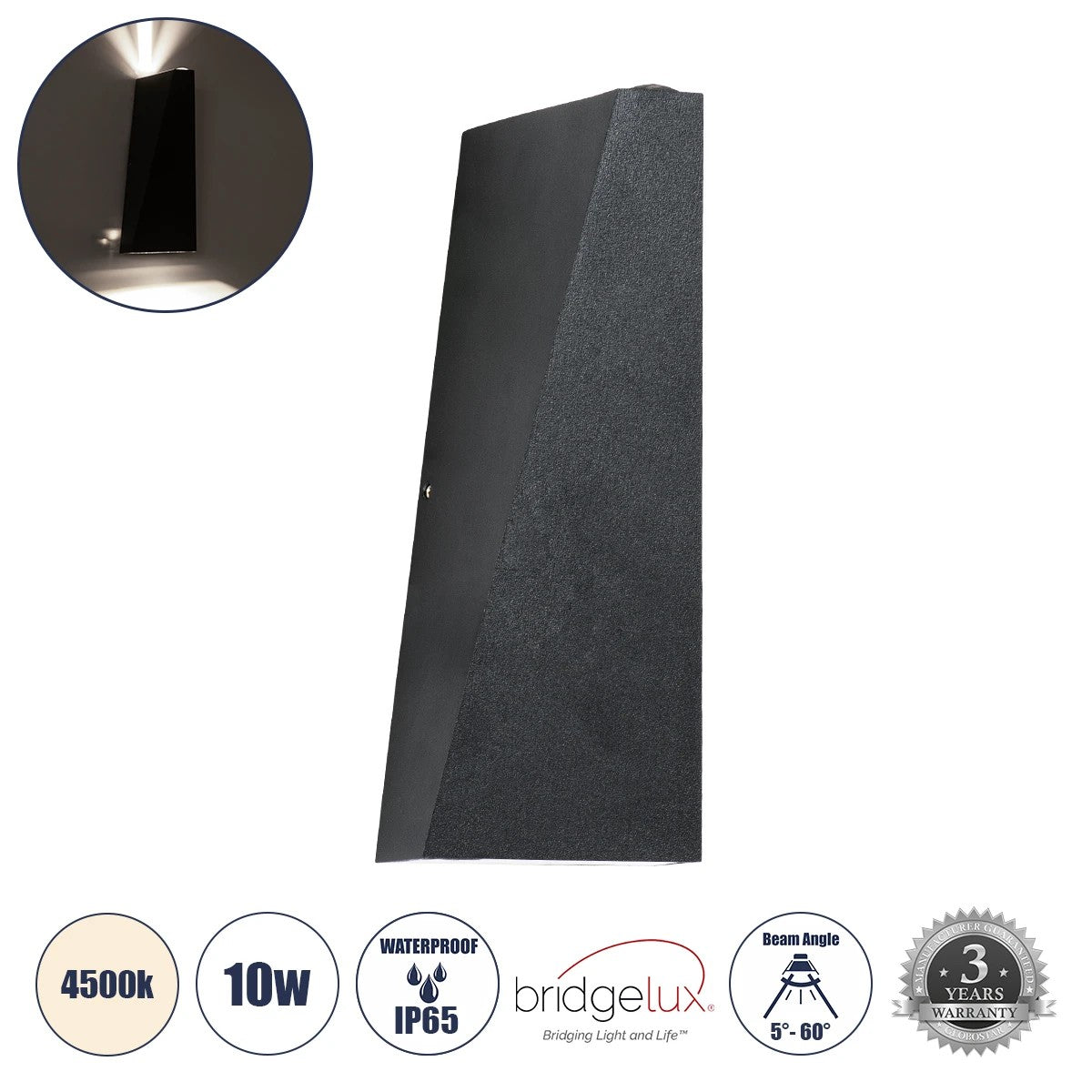 GLOBOSTAR® TRIANDE 60556 Μοντέρνο Φωτιστικό Τοίχου - Απλίκα LED 10W 1200lm 5°/60° AC 220-240V Αδιάβροχο IP65 Φυσικό Λευκό 4500K - Bridgelux COB Chip & TÜV SÜD Driver - Μαύρο Ματ - Μ8.5 x Π8.5 x Υ20cm - 5 Χρόνια Εγγύηση