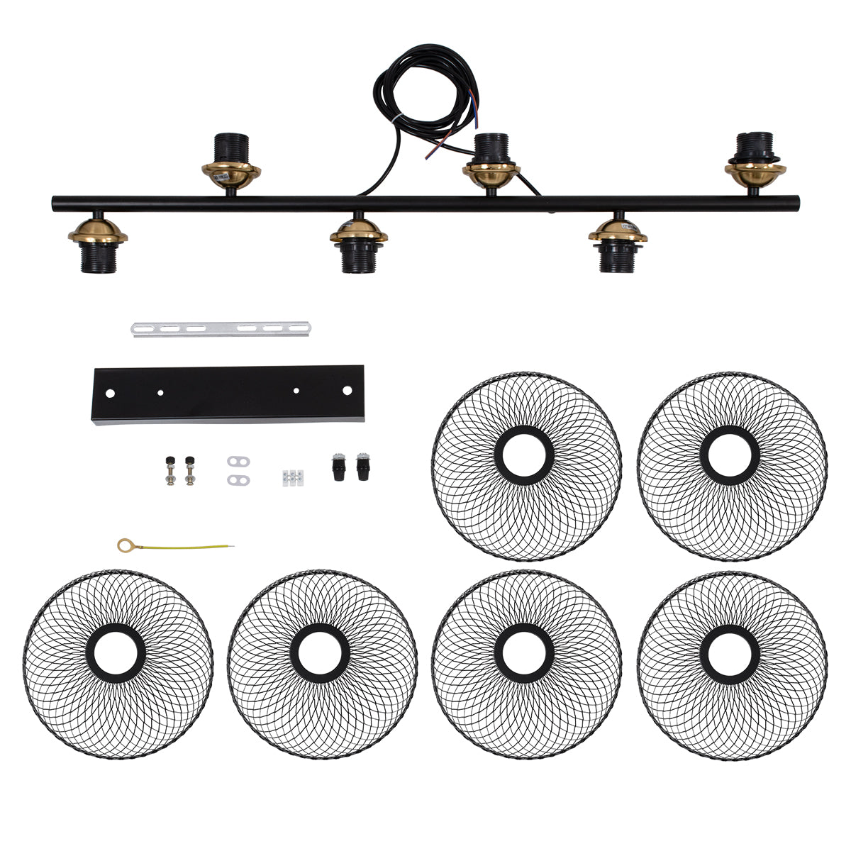 GLOBOSTAR® VERONA 00587 Μοντέρνο Κρεμαστό Φωτιστικό Οροφής με Ντουί 6 x E27 AC 220-240V IP20 - Μαύρο & Χρυσό - Μ100 x Π28 x Υ20cm