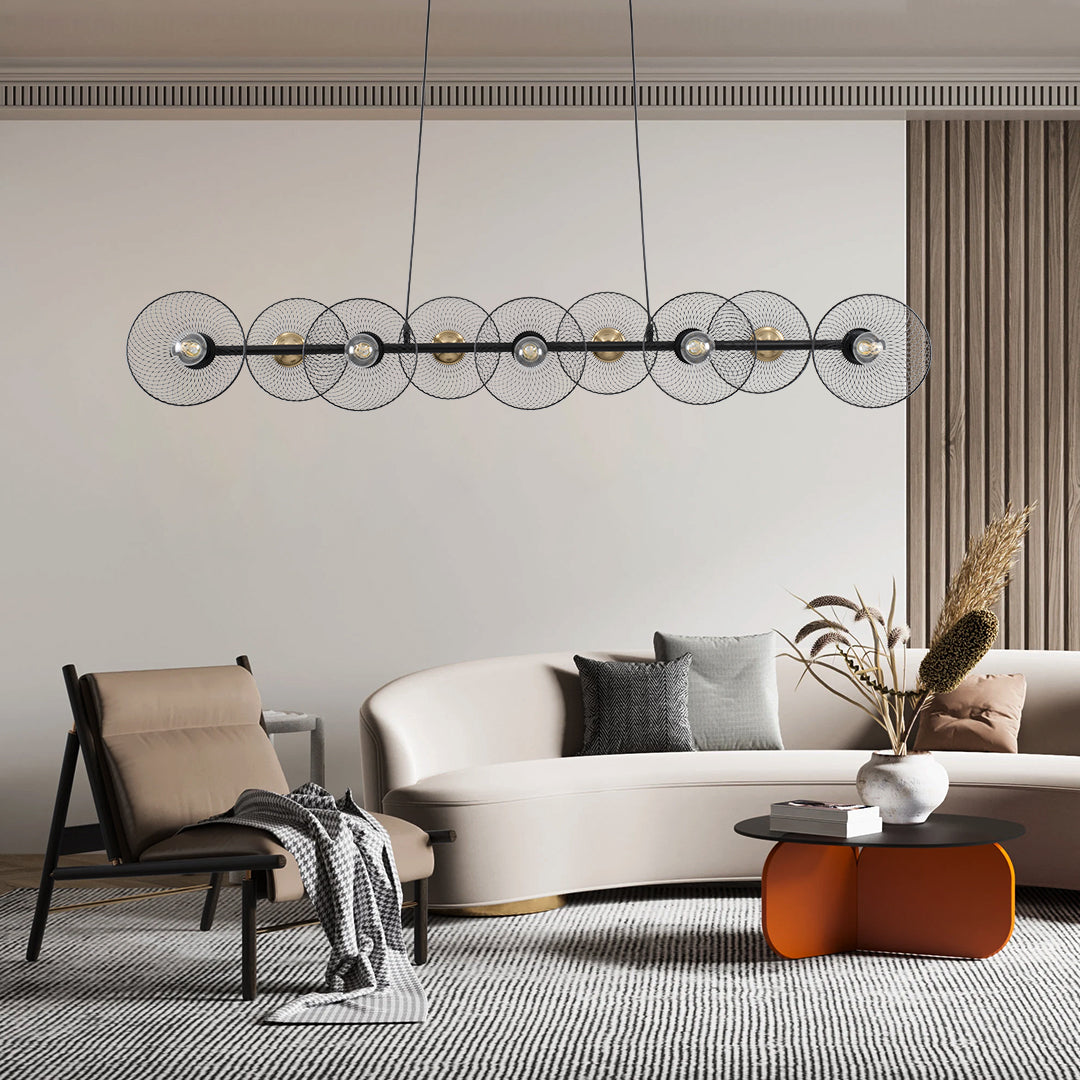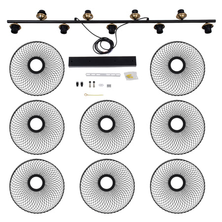 GLOBOSTAR® VERONA 00588 Μοντέρνο Κρεμαστό Φωτιστικό Οροφής με Ντουί 9 x E27 AC 220-240V IP20 - Μαύρο & Χρυσό - Μ140 x Π28 x Υ20cm