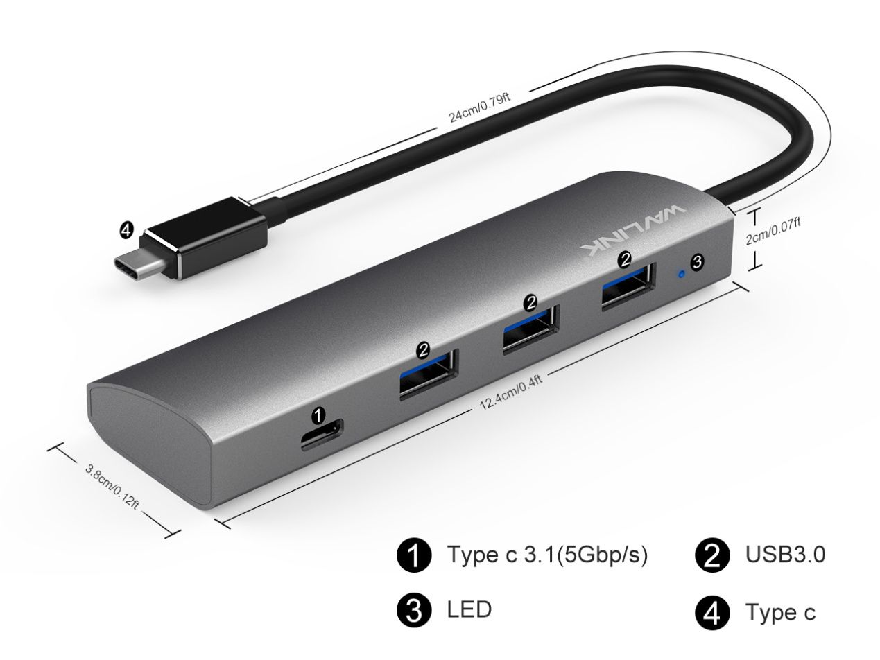 Wavlink Superspeed Usb 3.0 Type C 4 Port Aluminum Hub